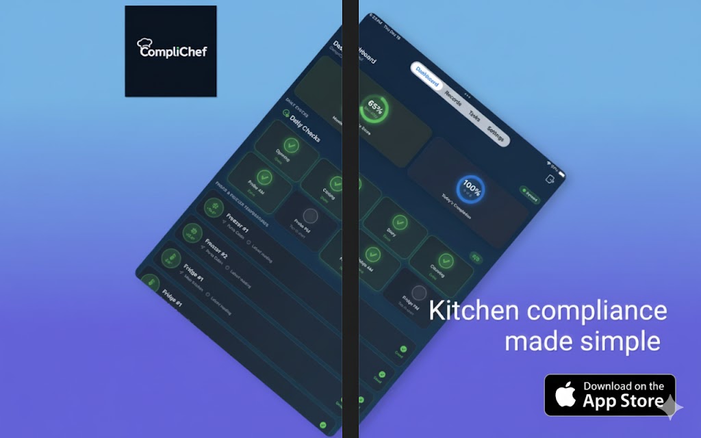 The CompliChef iOS app replaces paper-based food safety records with a clear, digital system that keeps kitchens inspection-ready at all times.